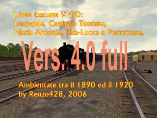 Scenario/Route : Linee toscane v.3 e v.4 Versione/Version: 3.0 e 4.0 Dimensione/Size: 19 Mb divisi in 2 file Autore/Author: Renzo Grassi Note/Notes: Patch per trasformare la V. 2.0 di "Linee toscane" in versione 3.0 e 4.0. Scaricare i due file e seguire le istruzioni.