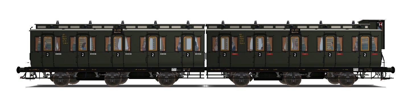 Ciao a tutti, queste carrozze erano utilizzate sui treni suburbani di Berlino a partire dal 1890. Con l'incremento del traffico si rese necessario allungare questi treni, tuttavia a causa della dimensione limitata dei marciapiedi, non era possibile aggiungere vetture e per problemi architettonici ed economici, non fu possibile allungare i marciapiedi. Gli ingegneri prussiani risolsero il problema agganciando rigidamente due carrozze tra di loro, eliminando così lo spazio occupato dalle due coppie di respingenti. Questo significò l'aumento di 50 posti per convoglio. Le unità "gemelle" a 3 assi, costituite esclusivamente da carrozze di 2 e 3 classe, comprendevano sia un veicolo con garitta per il frenatore e uno senza, sia due veicoli privi di garitta del frenatore. Con l'elettrificazione queste carrozze furono sostituite dalle elettromotrici ma non furono demolite bensì vennero destinate ad altre Direzioni, presso le quali, in alcuni casi, erano ancora in servizio dopo la Seconda Guerra Mondiale .