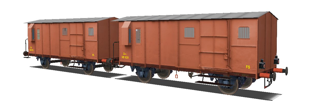 Ciao a tutti, questi carri ospitavano il capotreno dei treni merci. Erano utilizzati come bagagliai e espletavano il servizio di collettame ovvero la spedizione di piccoli colli. In genere era subito dietro la locomotiva o in fondo al convoglio ed era sempre presente in composizione a utti i treni merci fino agli anni '80. In due versioni castano e isabella e grigio ardesia con e senza luci di fine convoglio, è adesso online la versione 3.0 compatibile MSTS e OR e maggiormente dettagliata rispetto le versioni precedenti.